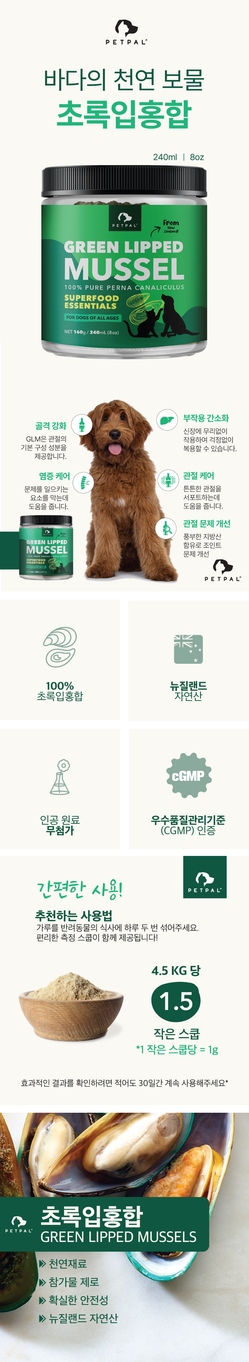 펫팔 반려동물 관절 초록입홍합 슈퍼푸드 파우더 240mL