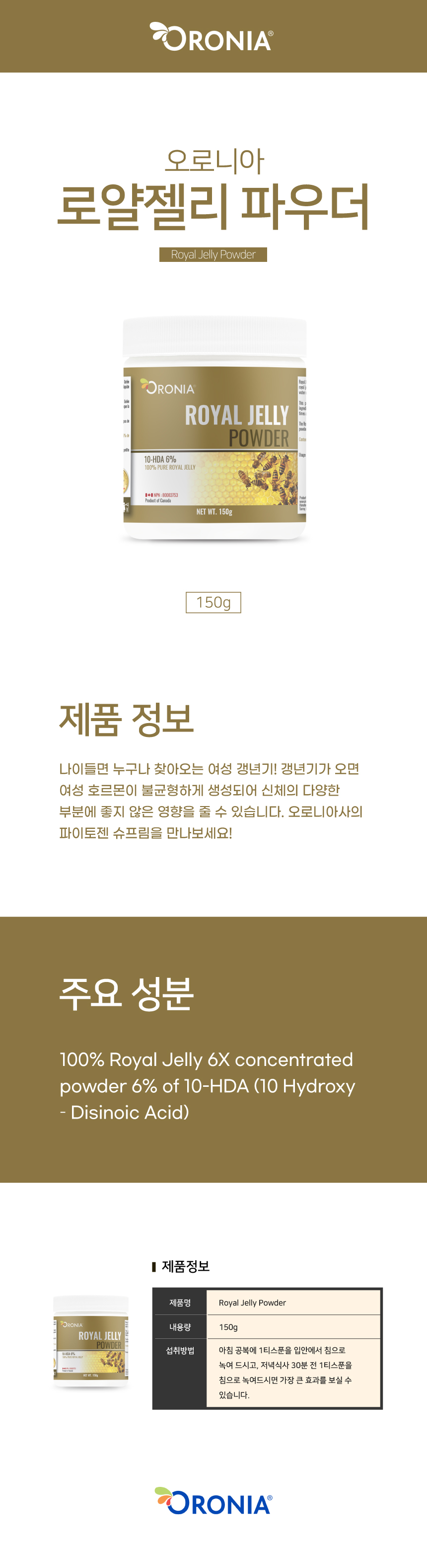 오로니아 로얄젤리 파우더 150g 로열제리 가루