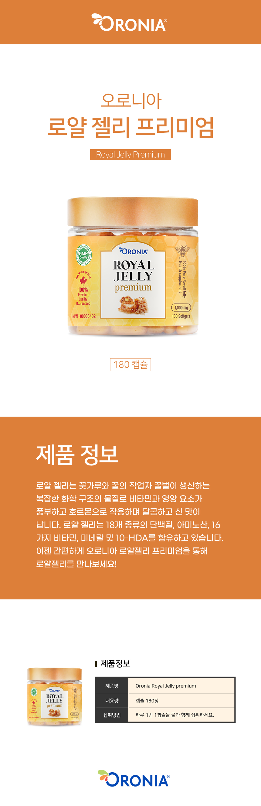 오로니아 로얄젤리 로얄제리 1000mg 180cap