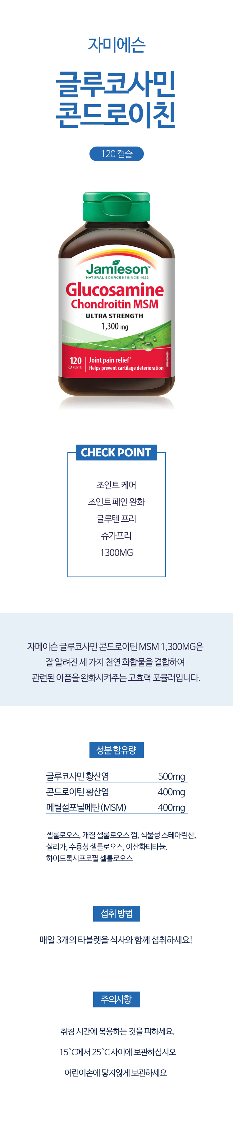 자미에슨 글루코사민 콘드로이친 MSM 1300mg 120정