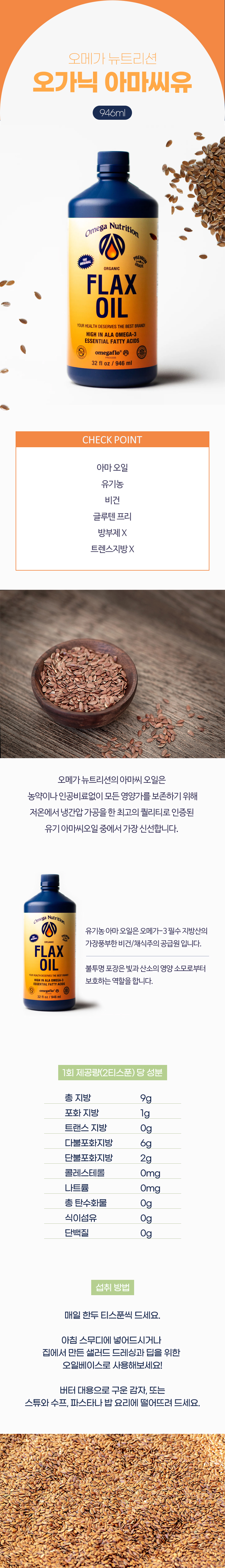 오메가 뉴트리션 유기농 아마인유 플랙스오일 946mL