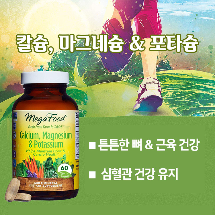 메가푸드 칼슘, 마그네슘 & 포타슘 60정 (MegaFood Calcium, Magnesium & Potassium)