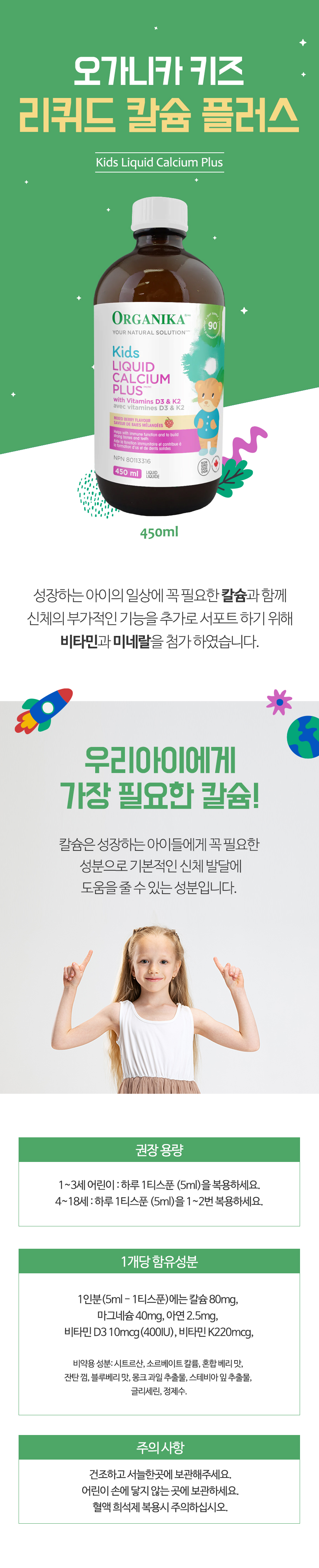 오가니카 키즈 차일드 액상칼슘 마그네슘 함유 450mL