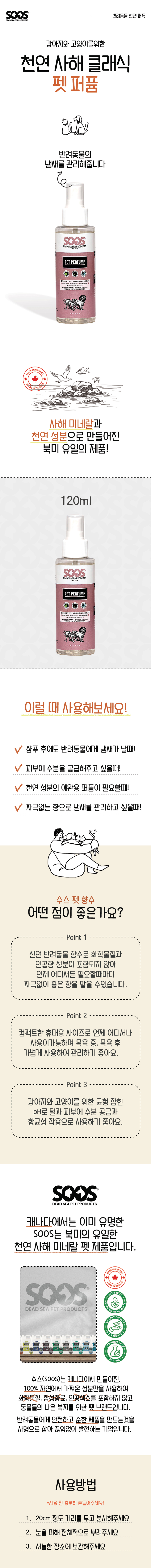 SOOS 수스 반려동물 강아지 고양이 펫 퍼퓸 120ml