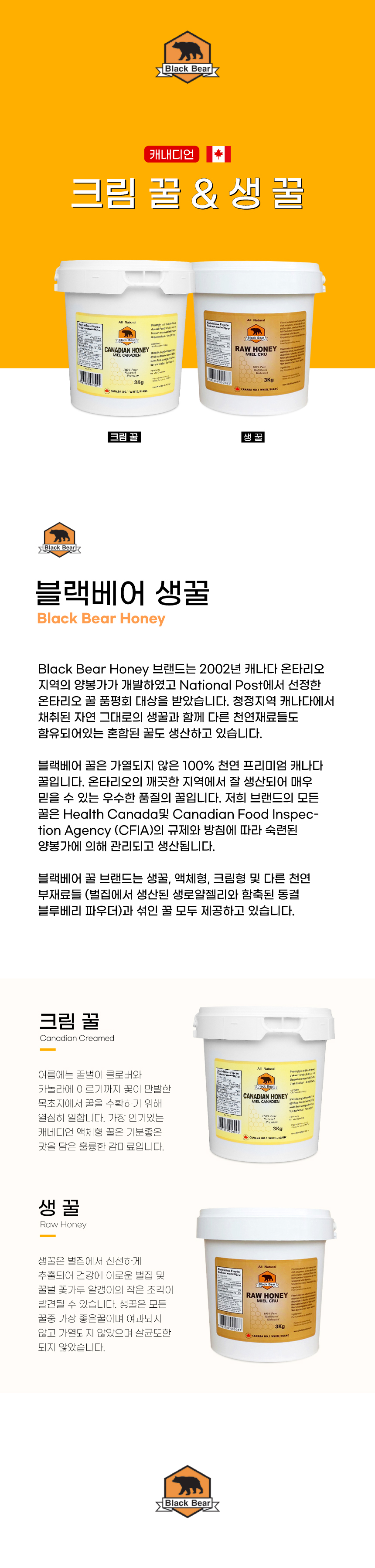 캐나다 블랙베어 꿀 캐나다 프리미엄 허니 생꿀 3KG 직배송