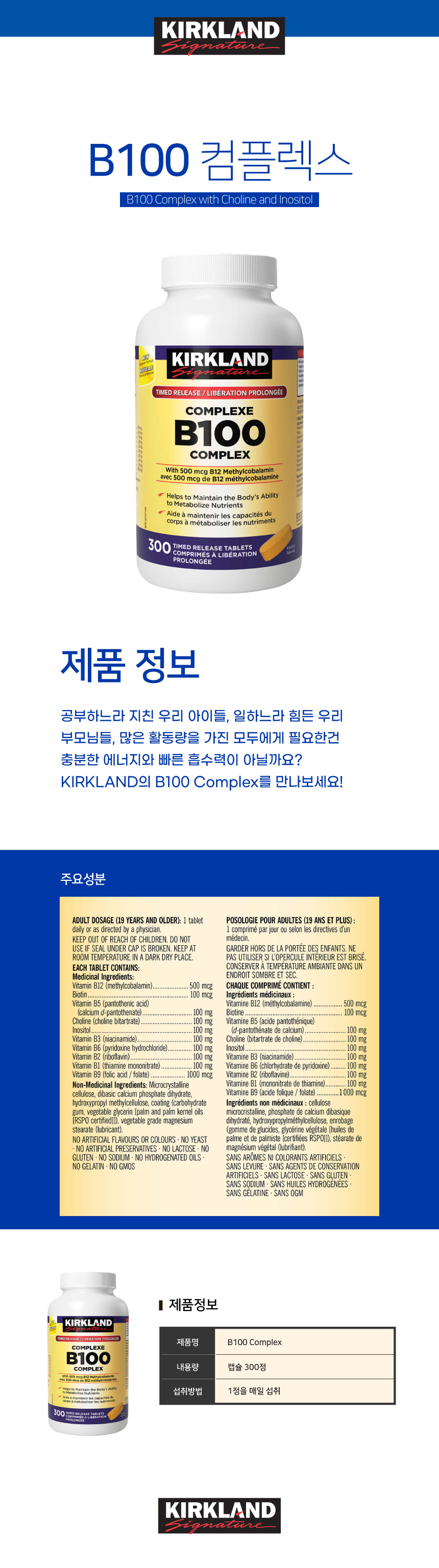 코스트코 커클랜드 비타민 B100 컴플렉스 300정