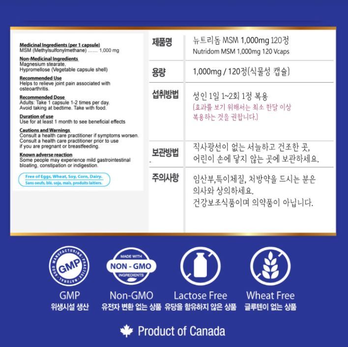 뉴트리돔 조인트 케어에 MSM 1000mg 120정 카포리아