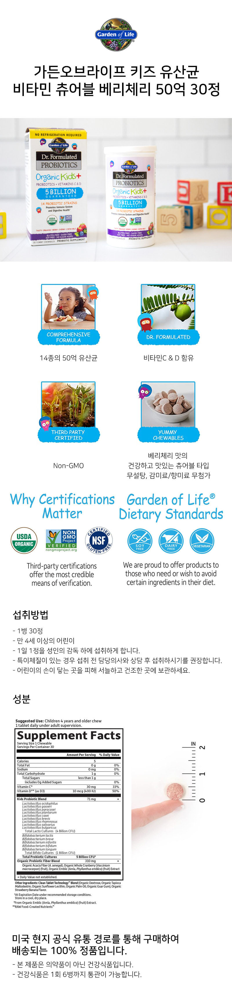 가든오브라이프 프로바이오틱스 오가닉 키즈+ 5빌리언 30츄스
