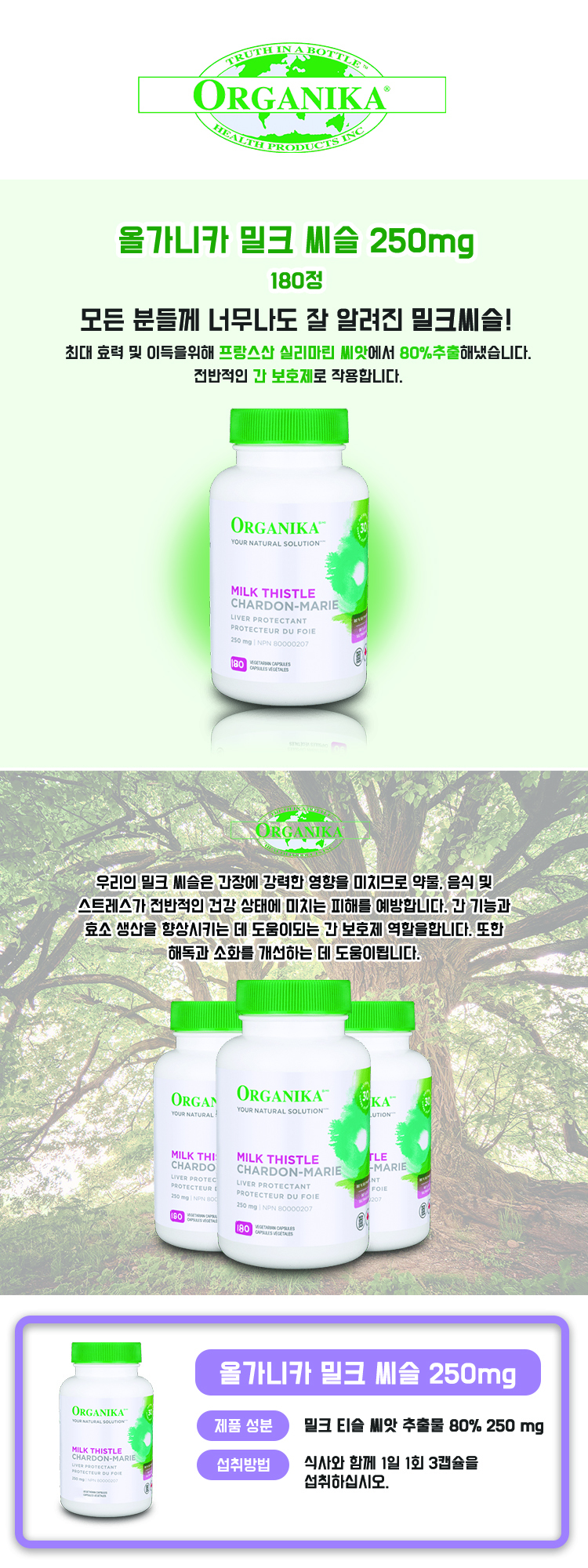 오가니카 올가니카 밀크씨슬 250mg 180정(Organika MILK THISTLE)