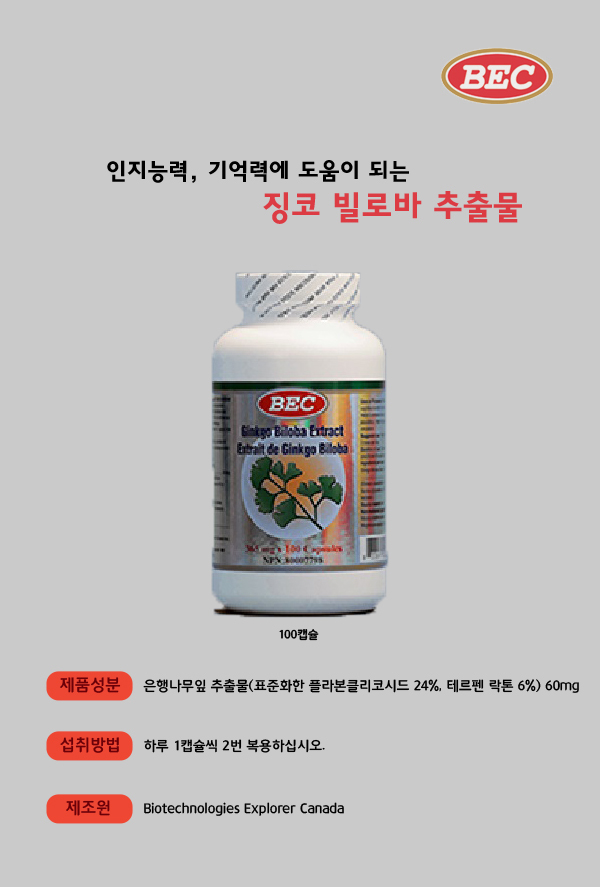 BEC 기억력에 도움 징코빌로바 추출물100정