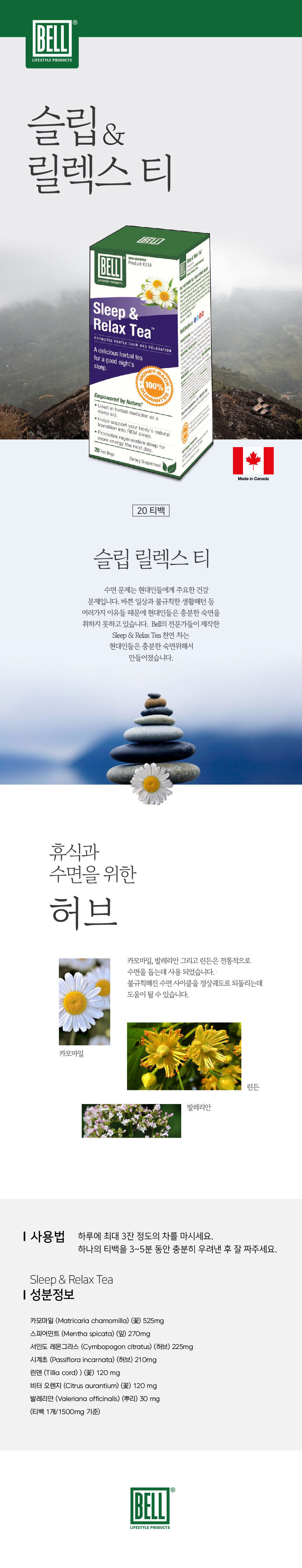 벨 슬립 & 릴랙스 진정티 20티백 허브 캐모마일