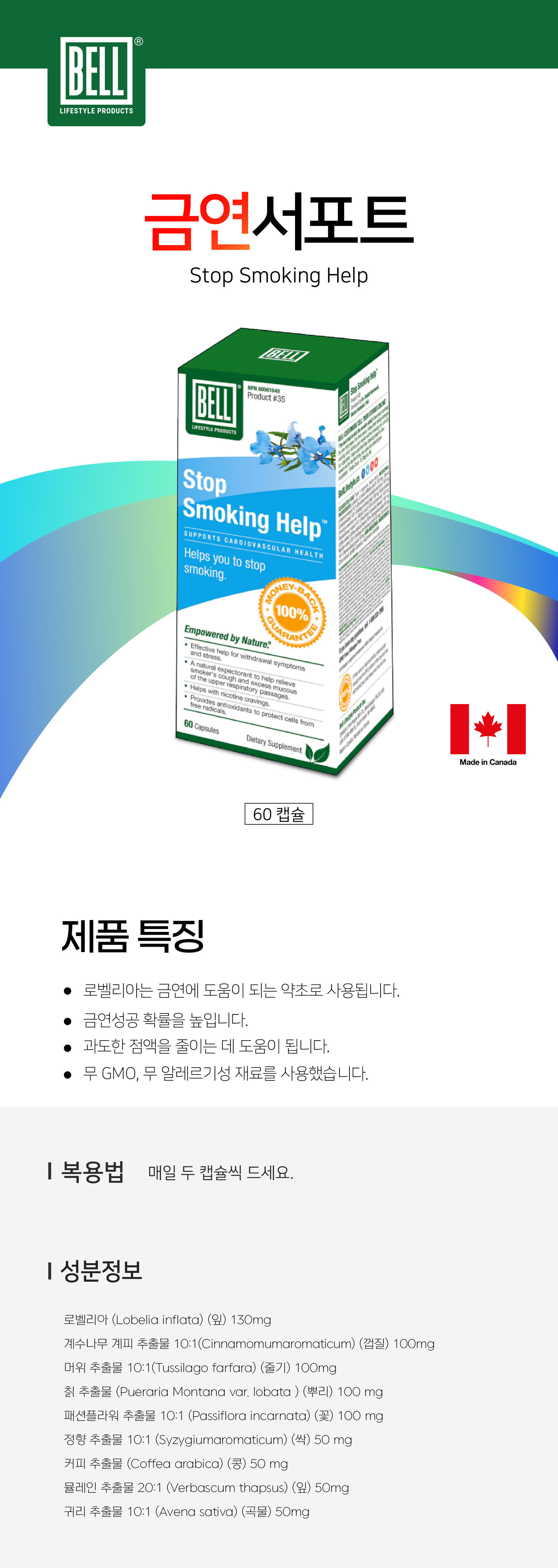 (벨) 스탑 스모킹 끊을 수 있게 금연의 헬프 60정