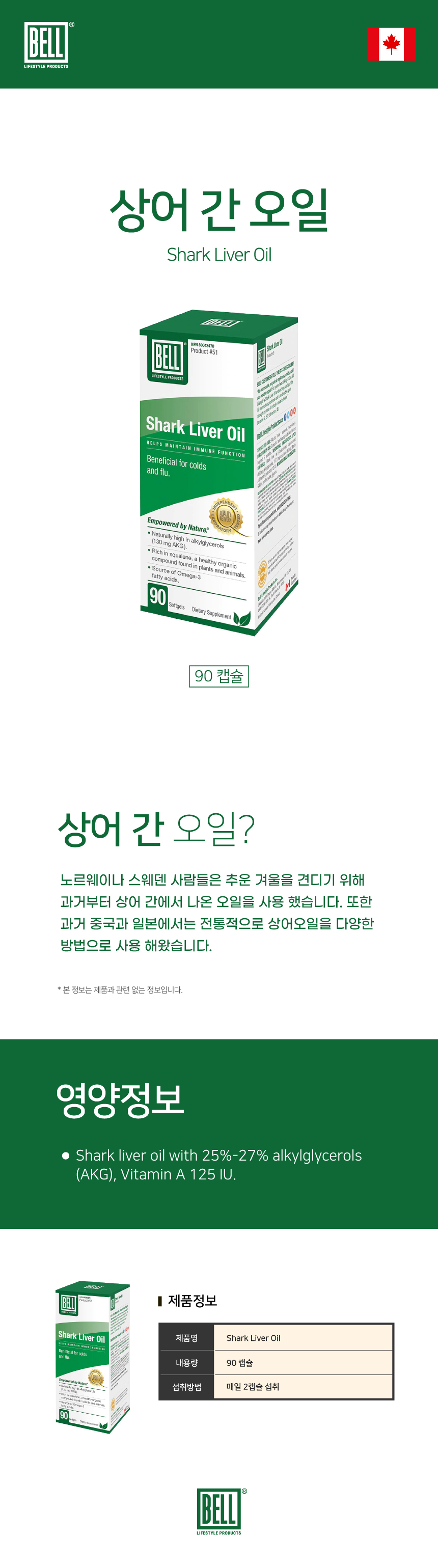벨 Bell 샤크리버오일 상어 간 오일 90정 오메가3